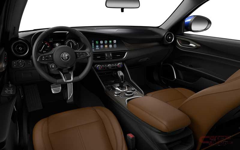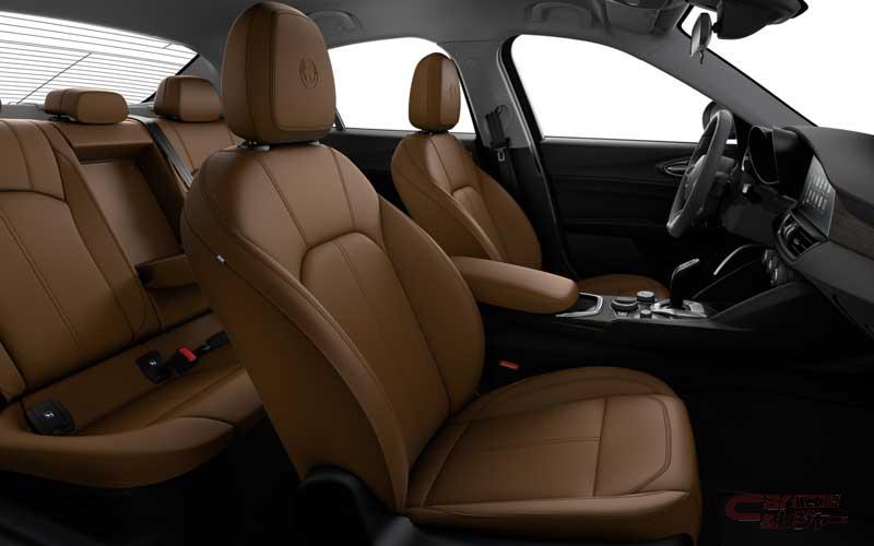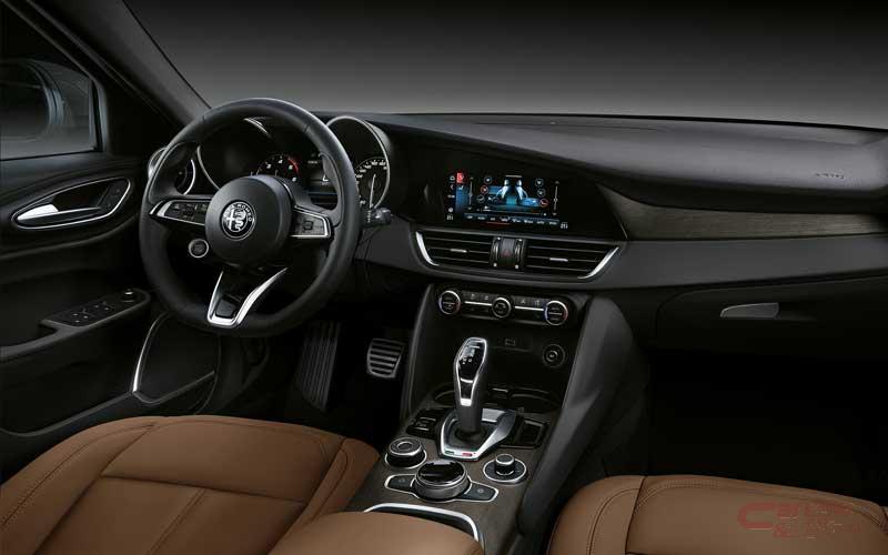 今回新たに追加する「ジュリア Ti」のモデル名の「Ti」は、“Turismo Internazionale”の頭文字を採ったもので、スポーツ性と快適性を兼ね備えたグランドツアラーとしての特性を磨き上げたモデル。エクステリアは、ダークタービンデザインを取り入れた18インチアルミホイールやボディ同色のエクステリアミラーハウジングといった専用パーツを採用してエレガントさを演出しているほか、フロントフェンダーには「Ti」エンブレムを装備している。インテリアでは、「Ti」専用となるグレーオークウッドパネルや、滑らかな風合いのナチュラルレザーシート(前席シートヒーター付、運転席シートメモリー付)を採用。また、シート色には専用のタンが設定され、ブラック基調のインテリアとの組み合わせにより、エレガントな仕上がりとなっている。