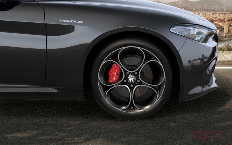 さらに、今回の仕様変更では“Veloce(ヴェローチェ)”と“Quadrifoglio(クアドリフォリオ)”の装備もさらに充実。“ヴェローチェ”には、ブラックのフロントグリルやエクステリアミラーハウジング、ダークエキゾーストフィニッシャー、新デザインのアルミホイール(19インチサイズ)を新たに採用。さらにリミテッドスリップディファレンシャル(LSD)が新たに搭載され、スポーツ性能がさらに強化された。