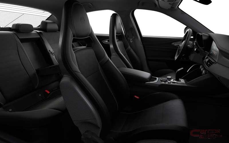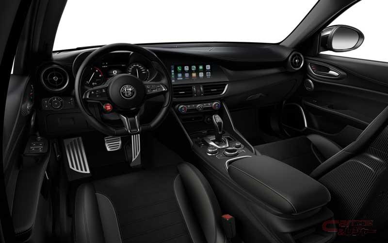 さらに、究極のダイナミクス性能を誇る“クアドリフォリオ”には、ブラックテールライト、レザー/アルカンターラ巻きステアリングホイール、高いホールド性、快適性、軽量化を両立したスパルコ製カーボンバケットシートを新たに採用した。
