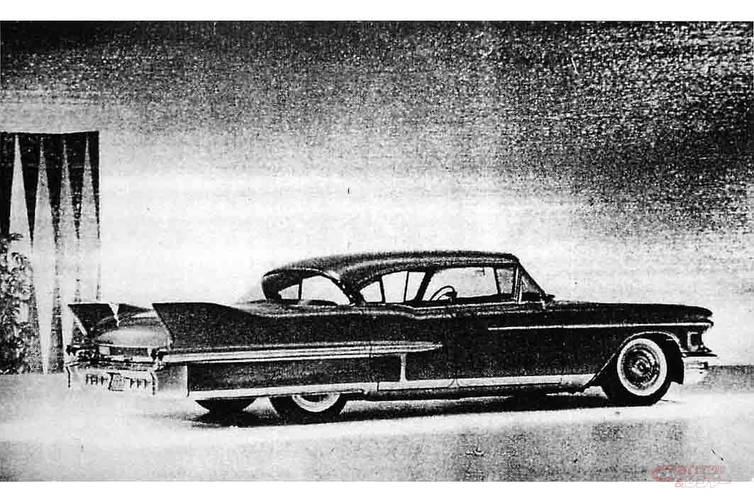 この葉書は、トヨタ博物館が企画したテールフィン・ラブと名付けたイベントの招待状だが、次の世代になると、フィンの高さが低められて尾灯も小さく細くフィンの一部に組み込まれて上品になり、高級車キャデラックにふさわしい品格を取り戻した。