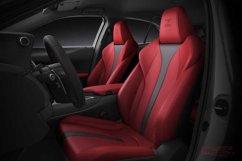 さらに、F SPORTにパフォーマンスダンパーとAVSを標準設定。車両後方に装着されたパフォーマンスダンパーによって、ボディに生じるしなりや微振動を速やかに吸収し、ハンドリングの特性を一層シャープにするとともに、乗り心地と静粛性を向上。減衰力切り替え応答に優れたAVSによって、大きなうねりと細かな凹凸が複合した路面でも、フラットな姿勢の維持とショックの遮断を両立し、優れた操舵応答性、安定感、快適な乗り心地を実現した。また、ステアリングギヤにブレースを追加することで、操舵応答性をさらに向上。ドライバーの操作に忠実でスポーティな走行性能を追求。インテリアでは、F SPORT専用のスポーツシート、ステアリング、シフトノブ、メーター、アルミ製スポーツペダルに加えて、今回アルミ製フットレストとスカッフプレートを新たに設定した。