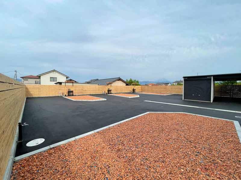 1日3台と少ない駐車数となっているが、1区画が大きく駐車スペースの横には3.5M×5Mの瓦チップを敷き詰めたフリースペースもついており各区画ごとに手洗い場も設置。さらに、シャワールーム、コインランドリー、Free Wi-Fi等の設備も充実。
