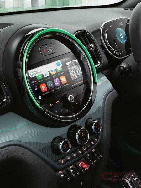 前車接近警告機能、衝突被害軽減ブレーキ、レーン・ディパーチャー・ウォーニング機能を標準装備。また、クルーズ・コントロール、パーク・ディスタンス・コントロール(フロント&リア)、縦列駐車をサポートするパーキング・アシスト・パッケージなども備えている。さらに、Apple CarPlayでiPhoneをMINIのセンターディスプレイに表示し、タッチ操作でGoogle MapやiPhone純正マップの使用、電話やメッセージの送受信などが可能なほか、MINI APP接続など、インテリジェントなコミュニケーション機能も多数装備している。