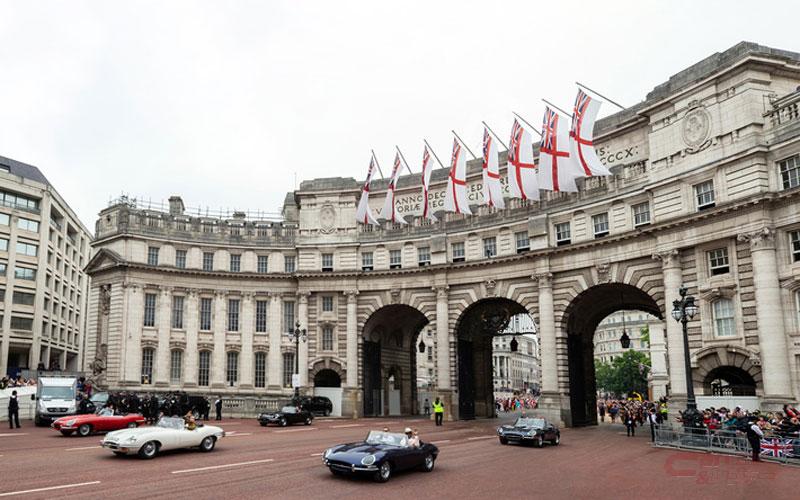 ジャガー・ランドローバーは6月5日(現地時間)、エリザベス女王陛下即位70周年を祝うプラチナ・ジュビリー・ページェント(祝賀パレード)に26台のジャガーおよびランドローバー車両とともに参加した。