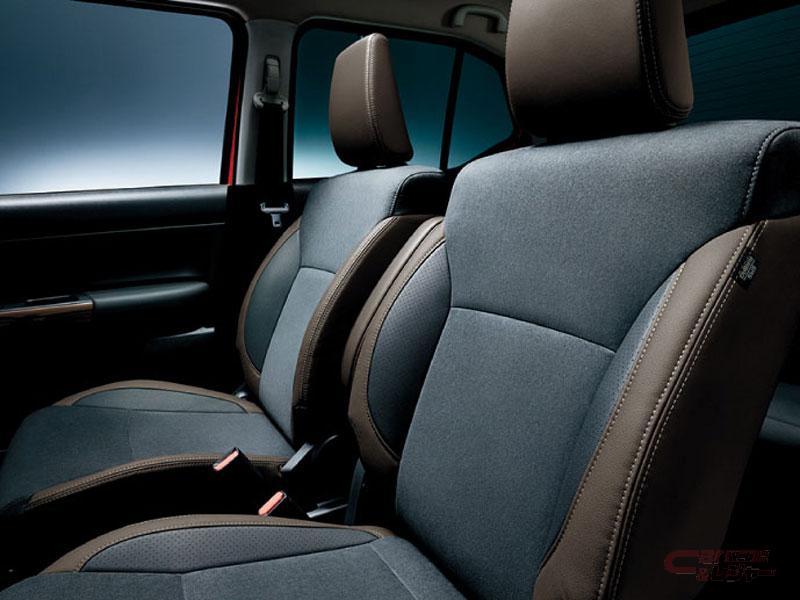 内装では、ラックススェード&ブラウンレザー調のシート表皮、ブラウンメタリックのインパネカラーパネルとドアトリムカラーパネル、ブラックレザー調のドアトリムクロス(フロントドア)を採用した「ブラウンアクセントパッケージ」をメーカーオプションとして設定したほか、シートカラーアクセント、シートパイピングの色を変更した。