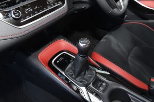 カローラスポーツに搭載される6速MTは、1・2ℓターボエンジンのみに設定。コンピューターがドライバーのクラッチ、シフト操作にあわせて、最適なエンジン回転数になるよう制御を行う「インテリジェントマニュアルトランスミッション(iMT)」を採用する。