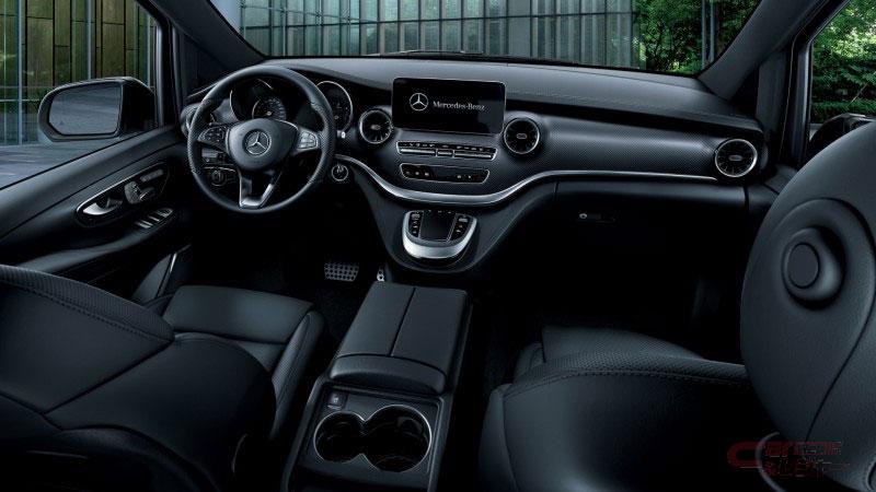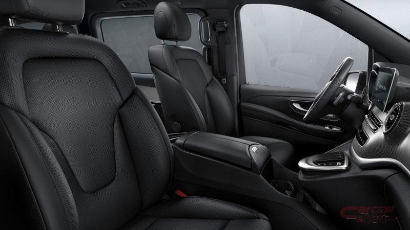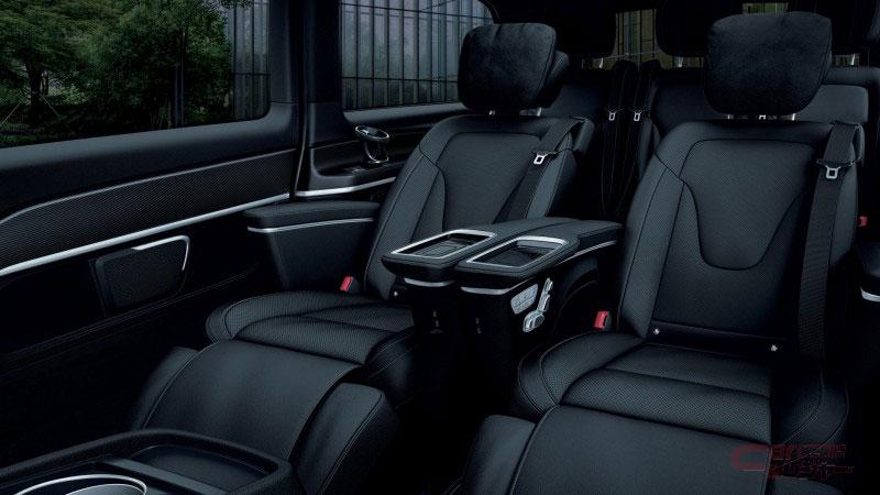 今回追加した「V 220 d アバンギャルド エクストラロング ブラックスイート」は、V 220 d アバンギャルド エクストラロングをベースに、フロントグリルやフロントバンパー、サイドミラーにブラックアクセントを施すとともに、足元には専用のブラックペイント19インチAMG7ツインスポークアルミホイールを採用した、迫力のある引き締まったエクステリアを採用。