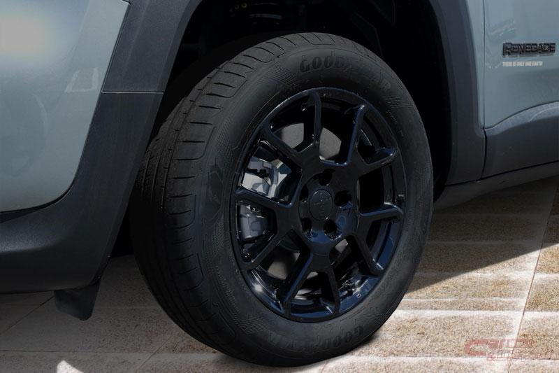外板色は、澄んだ水面をイメージさせる専用色のアズーマッターメタリックを採用。ブラック仕上げのルーフでスポーティさを演出しているほか、エンジンフードにはUpland専用のデカールがあしらわれ、同デカール上ならびに前席ドアのRenegadeバッジの下部には、「THERE IS ONLY ONE EARTH」と記されたデカールを装着。さらにブロンズのアクセントを用いた専用フロントグリルや、グロスブラック仕上げの17インチアルミホイールならびにドアミラーにより、外板色とのコントラストを際立たせた精悍なエクステリアとなっている。