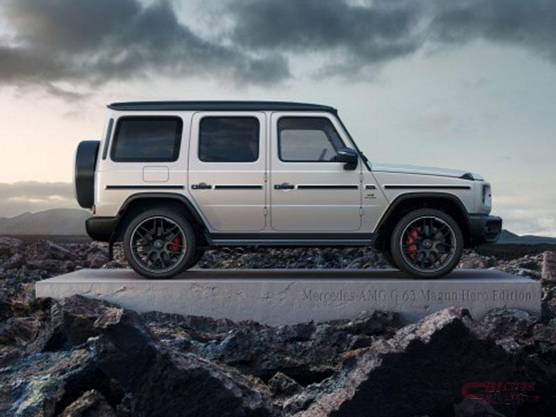 今回発表した特別仕様車は、ドイツ本社にて新設定したマットペイント外装色「グリーンヘルマグノ」「マグノオパリスホワイト」「マグノコッパーオレンジ」の3色を設定。バンパー、ルーフトップ、ドアミラー、スペアホイールカバーリング等にマグノナイトブラックのアクセントを施すとともに、前後スリーポインテッドスターおよびモデルバッジをブラック仕様に、ヘッドライトやウインカー等をブラックスモーク仕様にするなど特別感あふれるエクステリアとなっている。さらに、マットブラックペイント22インチAMGクロススポークアルミホイールを特別装備した。
