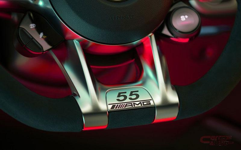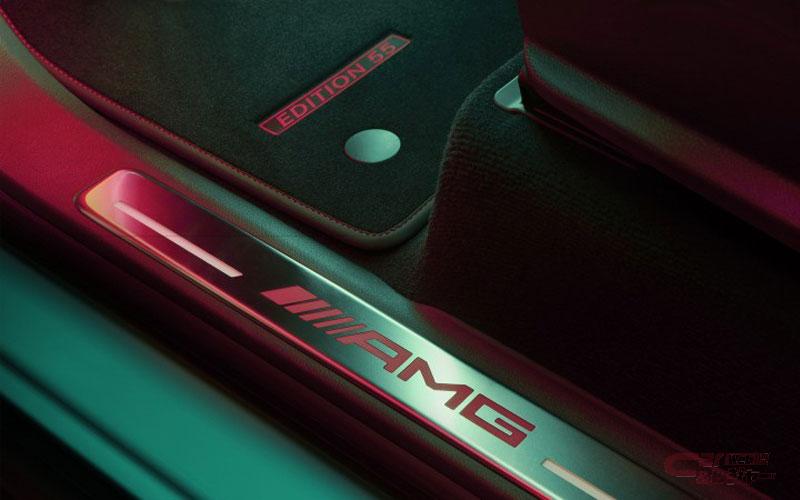 インテリアには、「Edition 55専用ロゴ」をあしらったDINAMICA仕様のAMGパフォーマンスステアリングを採用し特別感を強調しているほか、暑い時期のシートと接する部分の蒸れを防ぐシートベンチレーター[運転席・助手席]、リラクゼーション機能[前席]を備えた滑らかな肌触りのナッパレザーシートや、トリムの随所にカーボンを採用するなどスポーティなインテリアを演出するAMGマットカーボンインテリアトリムを標準装備している。