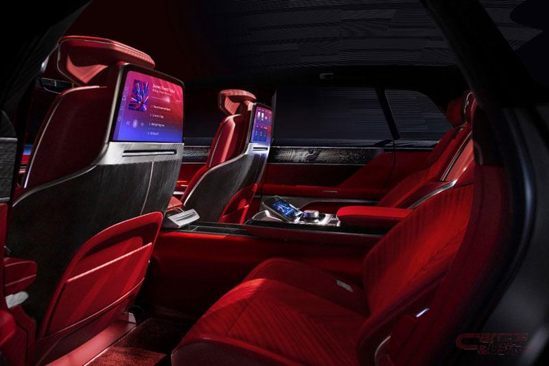 スマートガラスルーフは、座席位置に合わせた4つのゾーンで照明を別々に変えることができるSPD(Suspended Particle Device/浮遊粒子デバイス)技術を採用。乗員はそれぞれパーソナライズした快適性と視界などの車内体験を微調整することが可能なほか、対角55インチのアドバンストLEDディスプレイでは、アクティブプライバシー技術である電子デジタルブラインドを備えたパッセンジャーディスプレイが導入され、ドライバーからは見えないよう工夫されつつ、乗員が映像コンテンツを楽しむことができるよう設計されている。