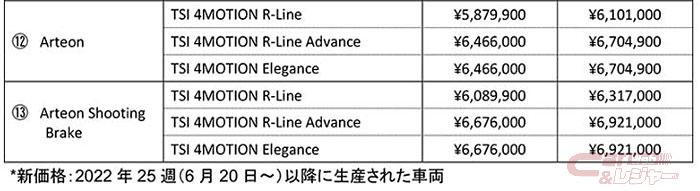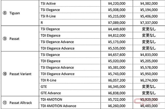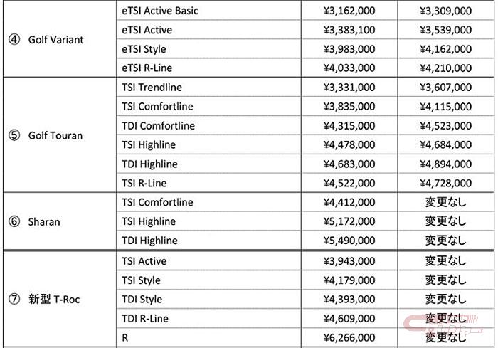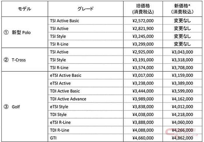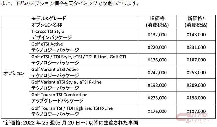 フォルクスワーゲン ジャパンは8月9日、フォルクスワーゲン車の一部モデルの仕様、ならびに全国希望小売価格を改定すると発表した。対象車両は2022年25週(6月20日~)以降に生産された車両(新型ポロ、新型ティーロック、パサート、パサート GTE ヴァリアント、シャランを除く)で、8月中旬以降順次出荷を開始する。