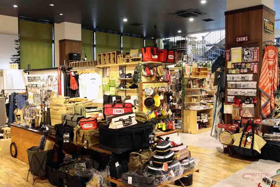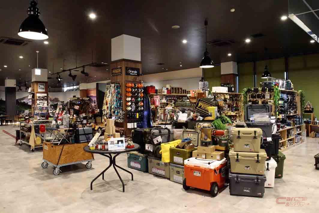 アウトドア関連のアイテムは大きく二つ。一つがハイエースをベースとしたキャンピングカーの販売、そして、もう一つが和歌山に本拠を置き、珍しい海外ブランドを含むアウトドア用品やアパレルを扱うセレクトショップ「オレンジ」が置かれていることだ。