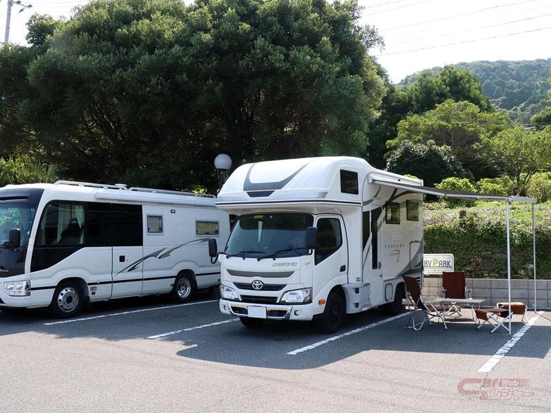 関あじ関さばで有名な佐賀関は大分市の最南端に位置しており、同RVパークでは「あまべの郷 関あじ関さば館」敷地内に電源付エリア5台、電源なし10台のスペースを設置。敷地内には「関あじ関さば」をリーズナブルな金額で提供しているレストランや深夜まで営業しているラーメン屋台も用意しているほか、新規オープン予定の貸切風呂も併設している便利な施設。