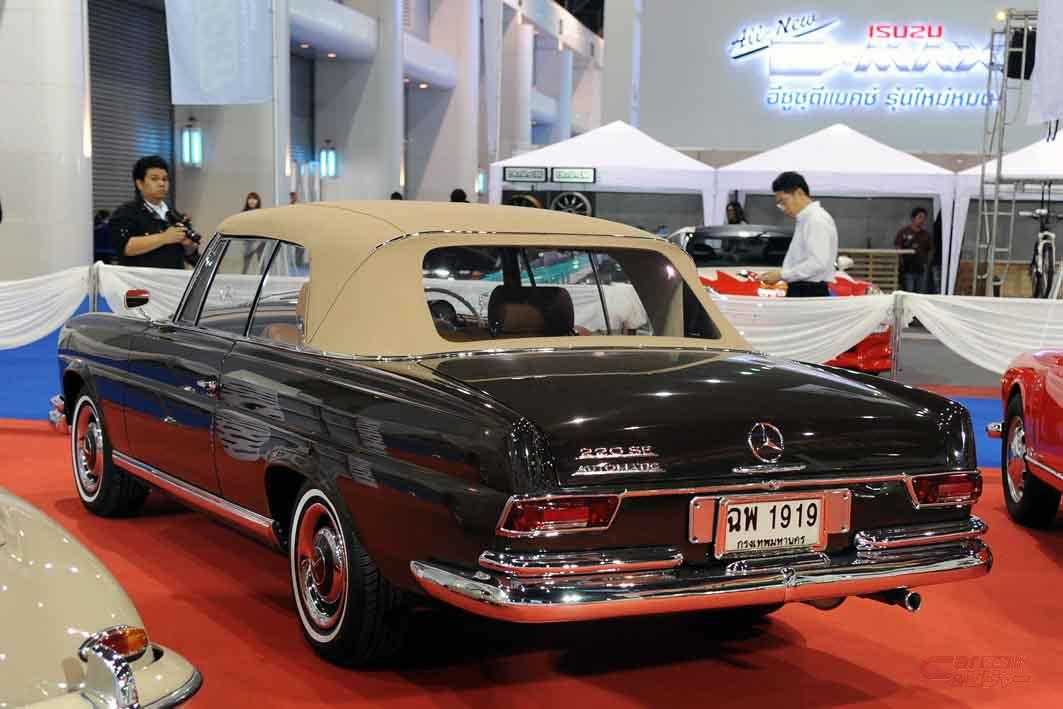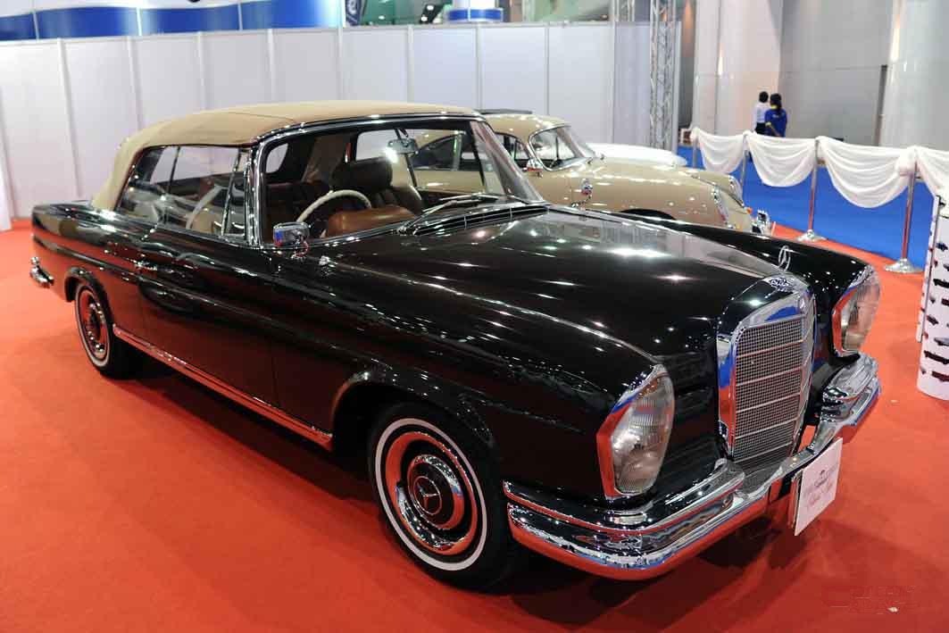 さて、毎回楽しみのクラシックカー、今回はメルセデス・ベンツ1963年型カブリオ。200シリーズのカタログ中でも最上級車だから、オーナーは裕福な人だったのだろう。正しくは、メルセデス・ベンツ・220SEdで、61年から65年まで製造された200シリーズの最上級モデルで、300SEセダンより高額だった。