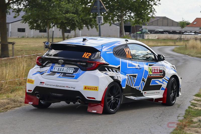 8月19日から21日まで開催された「イープル・ラリー・ベルギー」2日目(20日)のスペシャルステージ(SS)11、全長15キロの道幅が非常に狭い農道でデモ走行が行われ、GRヤリスのドライバーをモリゾウこと豊田章男社長が、コドライバーを4度のWRC王者に輝き、かつてトヨタでも世界タイトルを獲得した経験を持つフィンランド出身のユハ・カンクネン氏が担当。現地時間の20日午前、SS11の競技開始前にステージの安全を確認するため走行する「セーフティーカー」の前に走行するテストカーとして走行を行った。