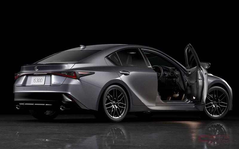 特別仕様車“F SPORT Mode BlackⅢ”は、“F SPORT Mode Black”の第三弾モデルとなり、IS350/IS300h/IS300 “F SPORT”をベースに、専用の鍛造アルミホイールやシート、バイトーンカラーの専用外板色ブラック&チタニウムカーバイドグレー、ブラック塗装の専用ドアミラーやウインドウモールなど、ブラックを基調としたカラーコーディネートを採用し、精悍なエクステリアとした。またインテリアでは、アッシュ材を銀墨色に仕上げた専用デザインのステアリングやオーナメントパネル、特別仕様車専用ウルトラスエード(ブラック)/L texスポーツシート、専用8インチTFT液晶式メーターなどを採用している。