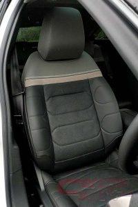 特筆に値するほど上質という仕上がりではないものの、チープな感触は皆無。それでも、シートバックやドアトリムの刺繍ラインには前出”ダブルシェブロン”をモチーフとしたデザインが採用されるなど、遊び心を発見することも可能だ。