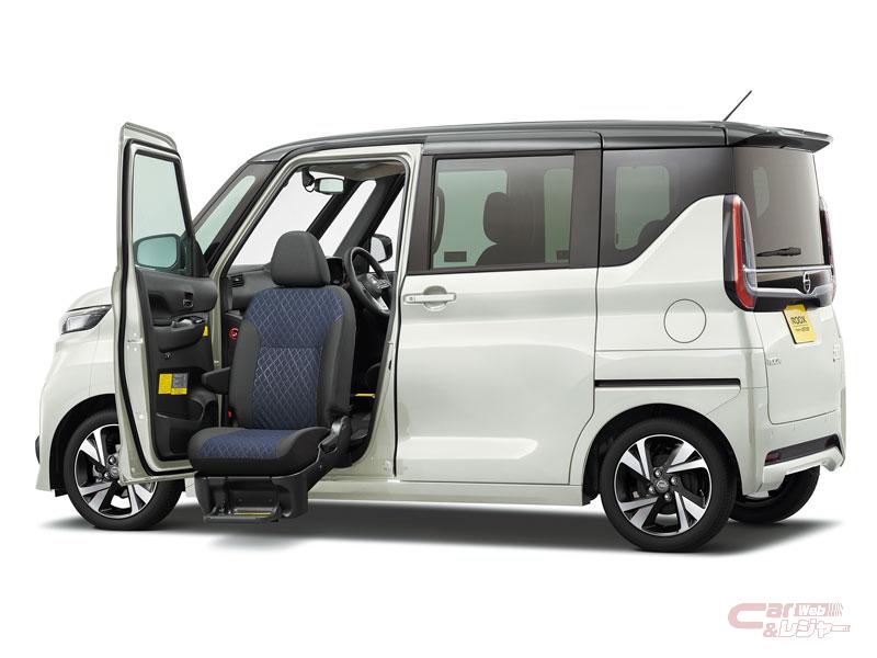 ルークス「ライフケアビークル(LV)」シリーズでは、全車でシートを抗菌仕様としたほか、燃費性能をベース車と同等に向上。また、エクステリアカラーにソーダブルー/アッシュブラウンの2トーンを新たに追加した。さらに「助手席スライドアップシート」は、ターボグレードを含む2WD車の全グレードをベースに拡大設定したほか、助手席側スライドドア部のオートステップを新たにオプション設定し、乗り降りをサポートする2つのアイテムを、1台に同時に装備することを可能とした。「オートステップ付車」では、乗降時や乗車中に使用できるグリップや、汚れが簡単に拭き取れる防水シートなどのアイテムをオプションとして設定した。