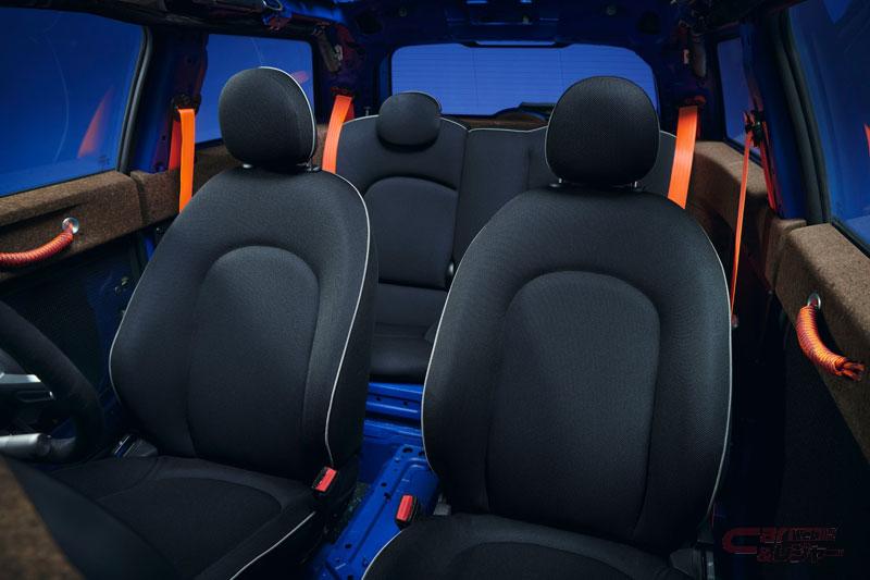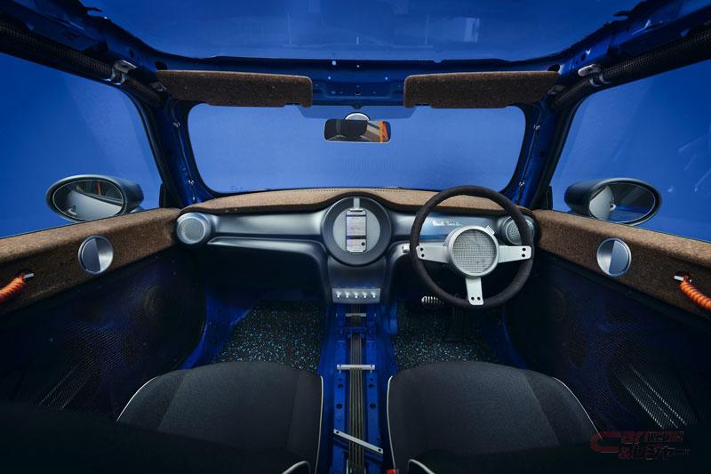今回初公開される特別仕様車は、MINIとポール・スミス氏が「自動車製造における持続可能性」という目標を掲げ、「シンプルさ、透明性、持続可能性」をテーマに開発された「MINI STRIP」「MINI Recharged」の2台の電気自動車。