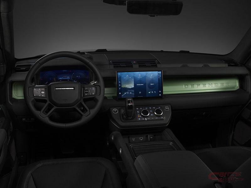 インテリアでは、グラスミアグリーンパウダーコートブラッシュドフィニッシュのクロスカービームやレーザーエッチングディテールが施されたエンドキャップを採用。エボニーレジストシート、センターコンソールサイドのホッケースティックは、「DEFENDER」で最も頑丈なファブリックであるロバステックを使用してる。