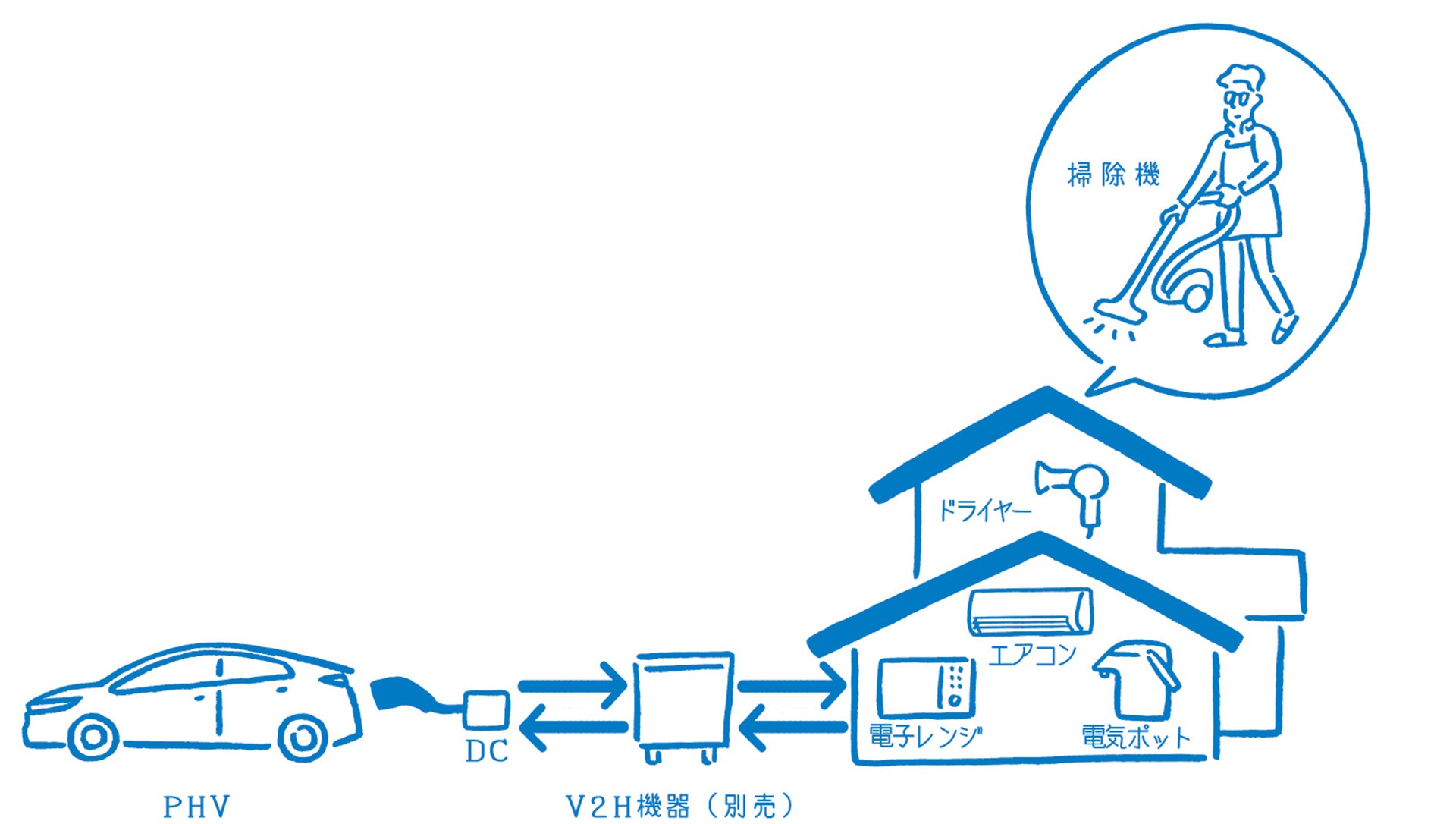 具体的には、急速充電インレットに、外部給電機能(V2H)をオプション設定し、V2H機器(別売)と接続することで、プリウスPHVの駆動用バッテリーに蓄えた電力を、家庭用電力として利用することが可能。あわせて、住宅の太陽光発電などで生じた余剰電力を、車両の駆動用バッテリーに蓄電することも可能としており、電力需要の平準化に効果が期待される。さらに、充電時間も普段の200V用充電ケーブルを使った場合と比べ、約1時間30分と大幅短縮が実現している。