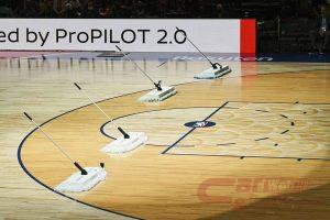 この特別なモップは「ProPILOT MOP」と呼ばれるもので、日産のプロパイロット搭載車同様、ハンズオフでモップが自動走行できる。さらに、コートの位置情報を認識する機能で、一定距離を保つ隊列走行や、ラインに沿った車線維持走行、前方のモップの追い越しなどを、障害物と接触することなくモップ掛けを行うことができる。