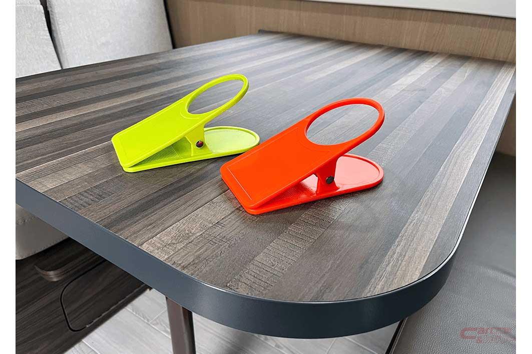 スタンプを9個集めるごとに記念品がもらえ(記念品の交換はひと月に1回)、記念品の内容は不定期で変更される。10月11日現在の記念品は、テーブルクリップドリンクホルダー(2個)で、この商品はキャンピングカーパーツセンターでも販売されている。