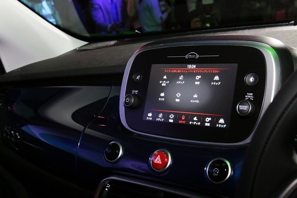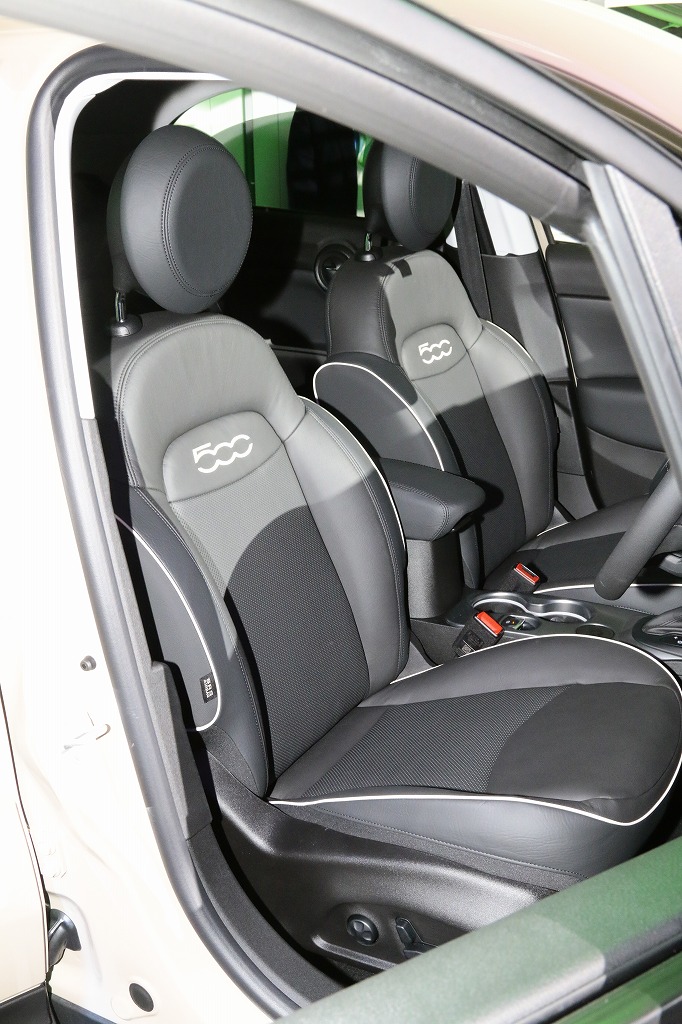 また、7インチタッチパネルモニター付のインフォテインメントシステム「Uコネクト」を採用し、レザーステアリングホイール、前席シートヒーター、デュアルゾーン式フルオートエアコンといった快適性を高める装備も充実。さらにクラッシュミティゲーション(衝突被害軽減ブレーキ)付の前面衝突警報、車線逸脱警報、リヤパーキングカメラ等の安全装備を全車に標準装備した。さらに、上級タイプの500XクロスはLEDヘッドライトやレザーシート、パドルシフト、アダプティブクルーズコントロール、ブラインドスポットモニター等を標準装備する。