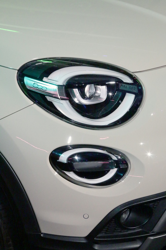 エクステリアは前後バンパーのデザインを改め、SUVらしい力強さを強調するクロススタイルを表現。新デザインのヘッドライトはLED化され、デイタイムドライビングライトとポジショニングライトを上下で分割し、「500」のロゴをモチーフにしたユニークなものとなっている。