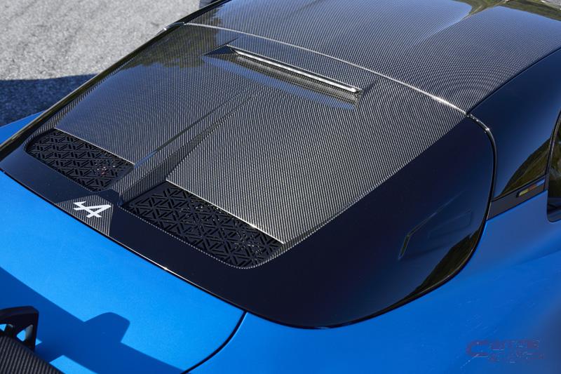 「A110 R FERNANDO ALONSO」は、フェルナンド・アロンソ選手自らがスペインのバルセロナサーキットでベースとなる「A110 R」を走らせ、このサーキットに合わせたシャシーセットアップを施した、希少なモデル。ダンパーには、アルピーヌが特許を持つ、Road(標準の車高)と Track(標準-10mm の車高)の2段階の車高調整機構(シム)を備え、Trackに設定すると、車高が10mm下がるとともに、スプリング剛性が5%上がり、フェルナンド・アロンソ選手が施したベストなシャシーセットアップとなる。