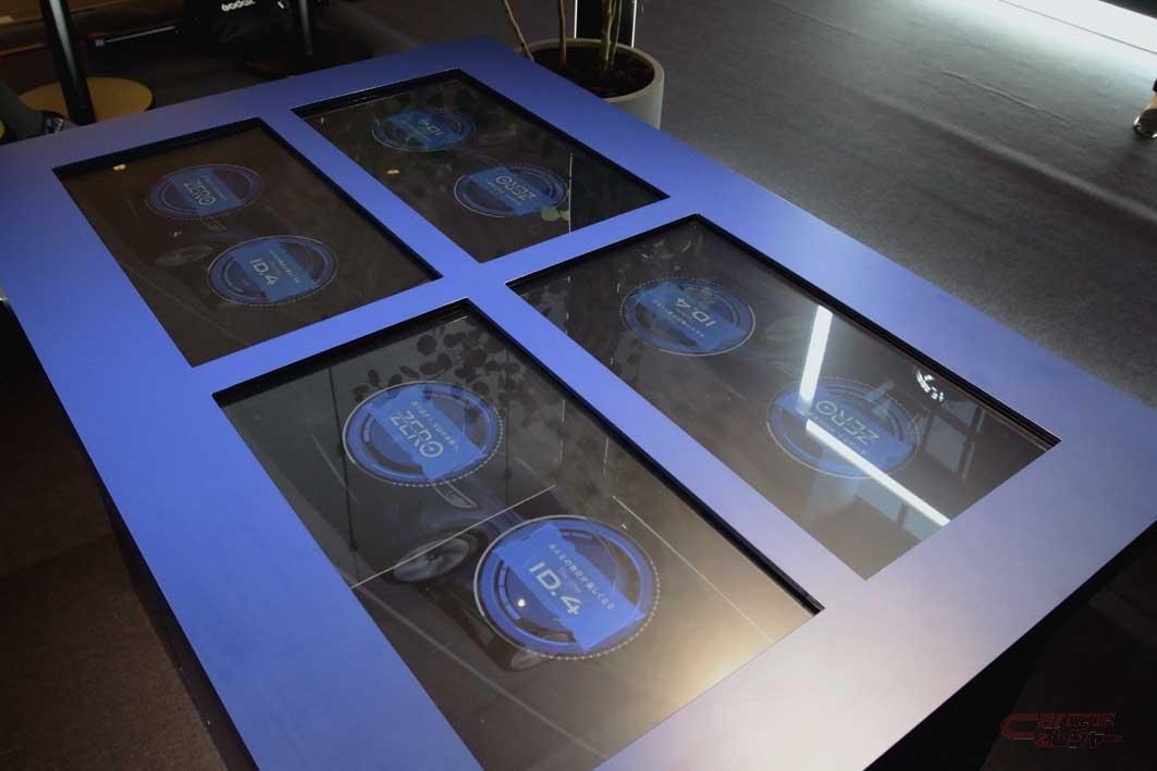 ②Way to ZERO SQUAREには、大人も子供も楽しめるインタラクティブパネルが設置され、画面をタッチすることでWay to ZEROやフォルクスワーゲンの歴史、最新EVであるID.4について映像で学ぶことができる。