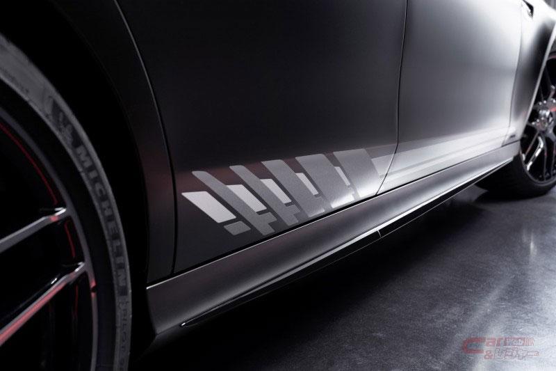 特別仕様車「メルセデスAMG E 63 S 4MATIC+ Final Edition」は、専用カラーのグラファイトグレーマグノ(マットカラー)を用意し、サイドにはAMGのロゴマークを想起させるデザインの専用デカールや随所にカーボンファイバー製のパーツをあしらうなど、スポーティでダイナミックなエクステリアを演出。さらに、20インチAMGクロススポークホイール(鍛造)、AMGカーボンセラミックブレーキ、AMGロゴプロジェクター、CピラーにAMGエンブレムを特別装備している。