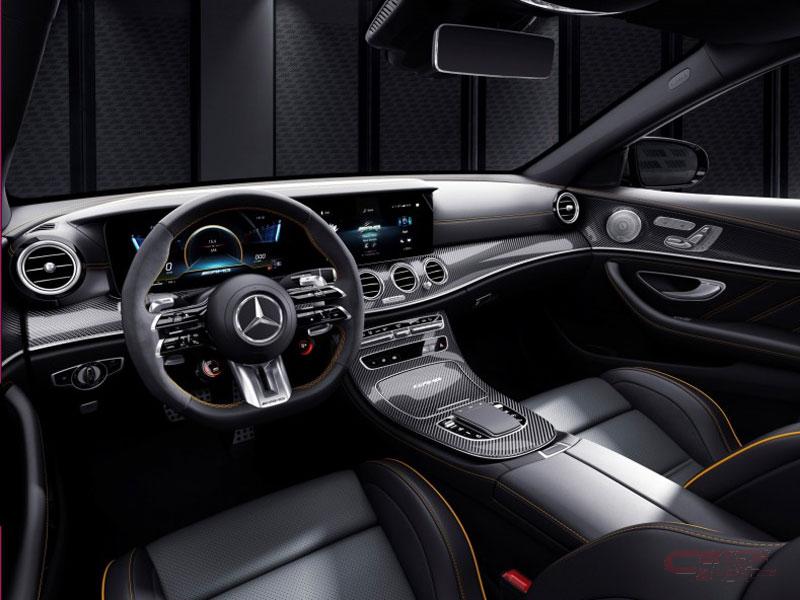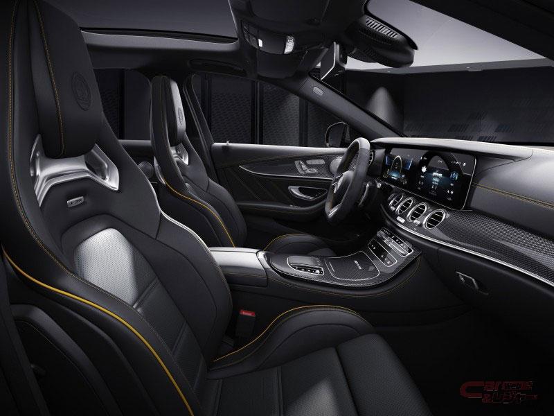 インテリアには、特別仕様車専用バッジ「FINAL EDITION1 of 999」をセンターコンソールに装着し、E 63の最終モデルとなる特別な1台であることを証明。また、内装にはイエローステッチを施したAMGナッパレザーチタニウムグレーパールとブラックの2色で構成され通常モデルでは設定が無かったAMGパフォーマンスシートやイエローステッチが入ったAMGパフォーマンスステアリングを採用しているほか、暑い時期のシートと接する部分の蒸れを防ぐシートベンチレーター[運転席・助手席]、トリムの随所にカーボン、パノラミックスライディングルーフ等を採用している。