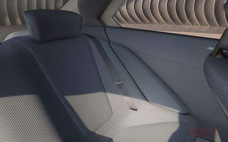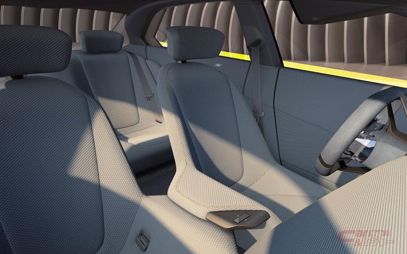 インテリアでは、デジタル化とともに、使用する素材を減らし、操作装置や表示装置の簡素化を図り、デジタル体験や新感覚のドライビング・プレジャーを邪魔するものがないように配慮している。ステアリング・ホイールは中央に縦長のスポークを配した斬新なデザインで、近づいたり触れたりするとタッチポイントがアクティブになり、親指で操作可能となっている。