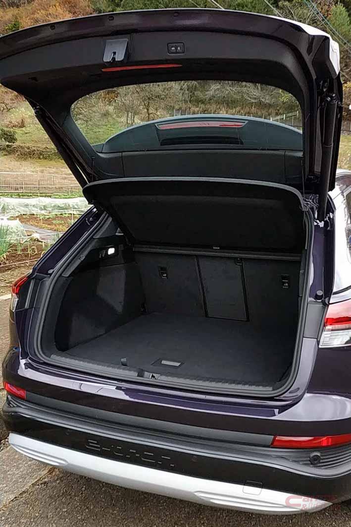 ボディ骨格は”MEB”と名付けられたピュアEV専用構造で、実はこれはフォルクスワーゲンの『ID.4』と同様のアイテム。搭載する駆動用バッテリーの総容量は82kWhでWLTCモードでの一充電航続距離は594㎞が発表値。”クワトロ”を謳う4WDシステムがお馴染みのアウディ車であるものの、このモデルはリヤアクスルに1基のモーターを搭載する後輪駆動方式を採用することも特徴のひとつと言える。
