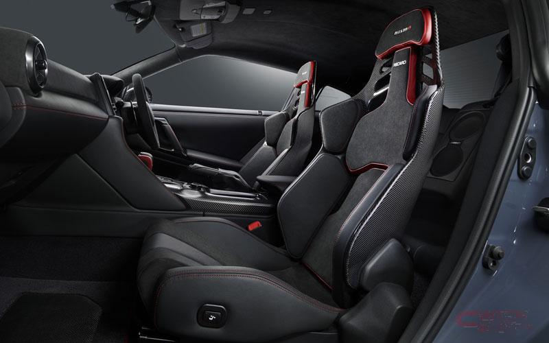 さらに「GT-R NISMO」は、レーシングテクノロジーを最大限注ぎ込み、空力性能の磨きこみとサスペンションのチューニング、フロントメカニカルLSDを追加することでコーナリング性能を向上しているほか、「専用RECARO製カーボンバックバケットシート」を刷新し、車両との一体感、快適性を向上。加えて「GT-R NISMO Special edition」では、ピストンリング、コンロッド、クランクシャフトなどに高精度重量バランスエンジン部品を採用し、クリヤー塗装を施したNISMO専用カーボン製エンジンフード(NACAダクト付)などを特別装備している。
