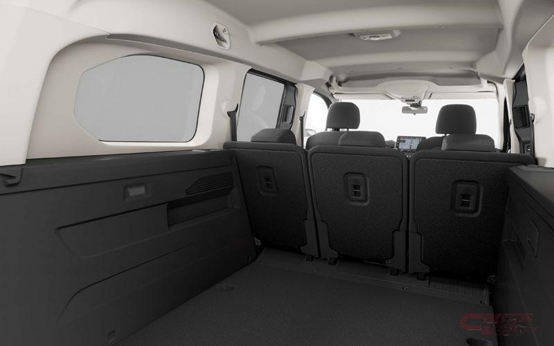 「BERLINGO LONG」のボディサイズは、全長4,770mm(ショートボディ比+365mm)、全幅1,850mm(±0)、全高1,870mm(+20mm)、ホイールベース2,975mm(+190mm)となり、ロングホイールベースと乗り心地にこだわった足回り設計が走行安定性を実現。3列目シートが前後にスライドできることや、ゆとりのあるヘッドクリアランスにより、ゆとりのあるスペースを確保しているほか、3列目シートを取り外し2列目シートを折りたたむことで、最大2,693リッターの大容量ラゲッジスペースを確保できる。