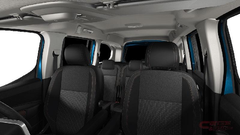 内装素材と内装カラーには、5シーターのリフターGTと同一のファブリックのブラウンツートーンを採用し、3列目シートは前後スライド(最大130mm)や、折りたたみと取り外しが可能。荷室の最大容量は、リフターの約2,120ℓと比較して、リフター ロングでは約2,700ℓと大幅に増加している。