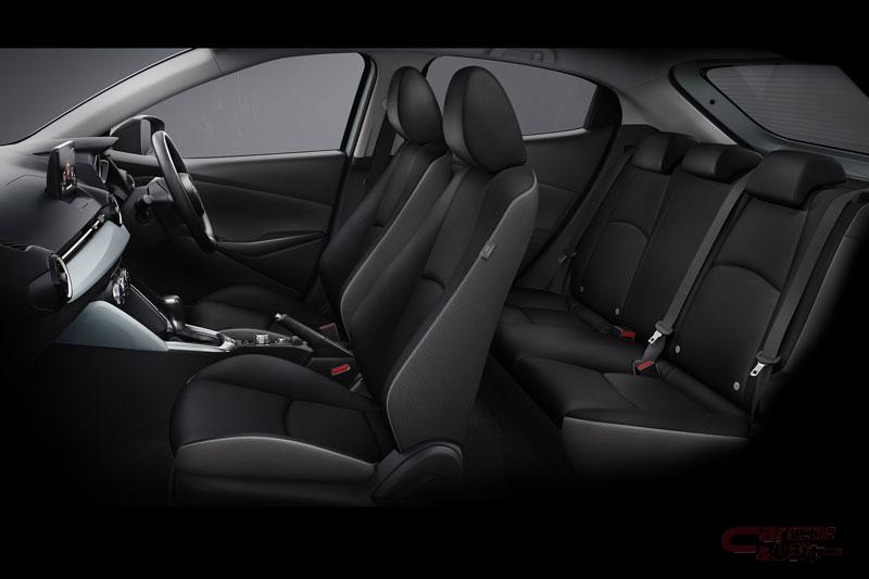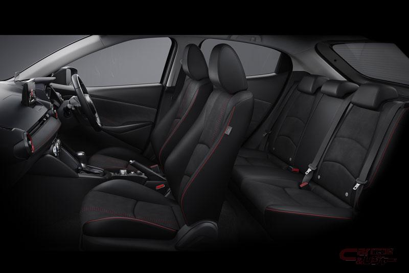 「15 Sunlit Citrus(イチゴー サンリットシトラス)」は、パワーシートやステアリングヒーターなどを標準装備とすることで、質感を向上。本革巻きのステアリング、シフトノブ、パーキングブレーキレバー、 パワーシート、ステアリングヒーター、SBS(スマート・ブレーキ・サポート)、MRCC(マツダ・レーダー・クルーズ・コントロール)、LAS(レーンキープ・アシスト・システム)を標準装備している。