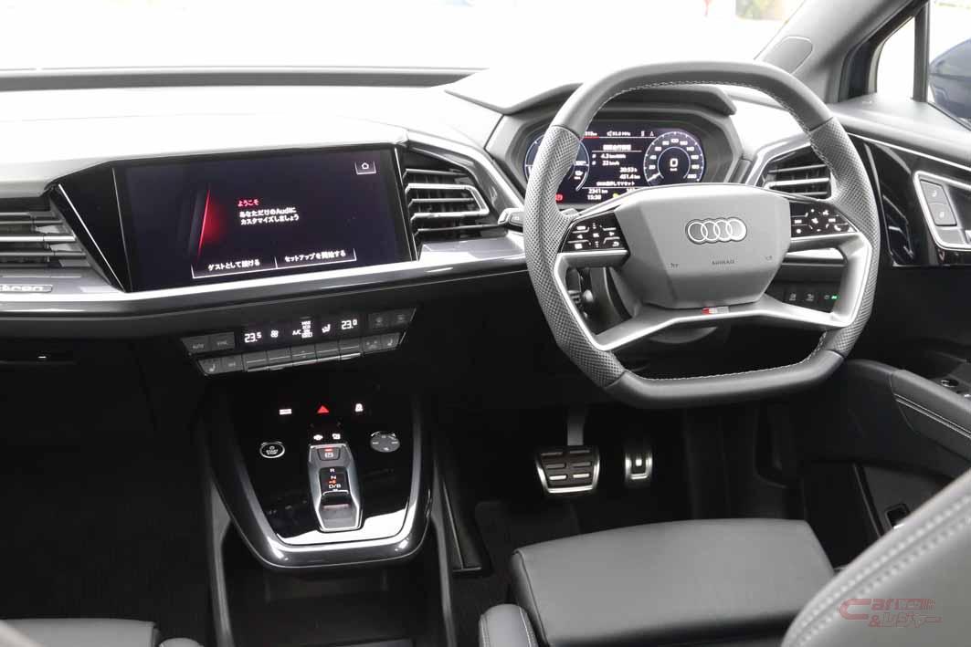 アウディではBEVをe-tron(イートロン)と呼び、現時点で試乗車を含め大型SUVや、4ドアクーペといったボディタイプの全7モデルを国内に導入。その中で今年1月に発売されたばかりの最新モデルが、Q4 e-tron(試乗車)/Q4スポーツバックe-tronだ。