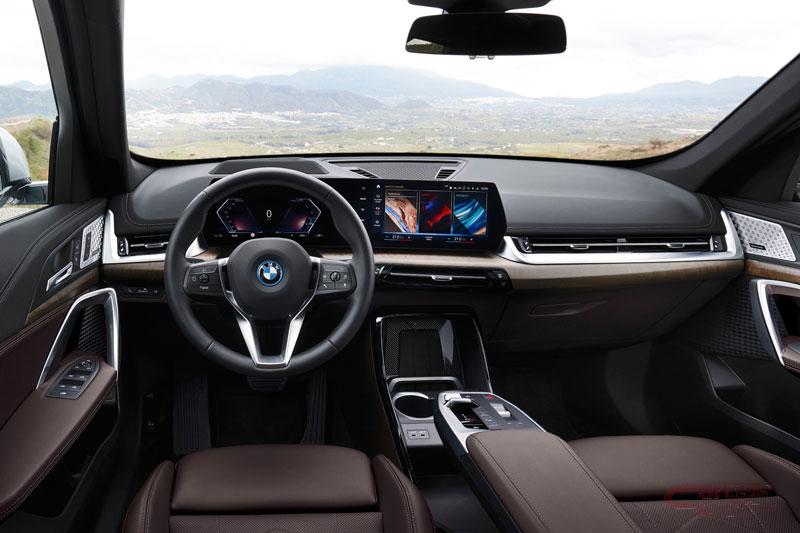 インテリアでは、メーターパネルとコントロール・ディスプレイを一体化させ大型化したほか、運転席側に傾けることで視認性を高め、タッチ操作による操作性を向上したBMWカーブド・ディスプレイを採用。さらに、シフト・レバーを廃止し、センター・アームレストに操作系を全て納めることで、モダンな印象とした。また、センター・コンソールにQi対応機器(スマートフォン等)を置く事で、充電も可能となる等、利便性も高めている。リアはゆとりのある空間を確保し、40:20:40分割可倒シートを採用。X1 xDrive20iのラゲッジ・スペースは、大人3名乗車時には540L、リア・シートを前方に全て倒すことで最大1,600Lにまで拡大することが可能となっている。