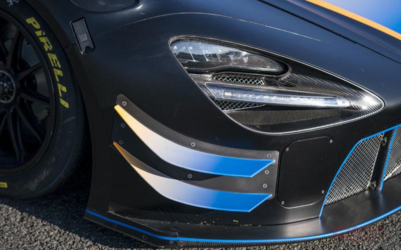 新型「720S GT3 EVO」では、フロントバンパーやスプリッターなどのボディワークを改良。クイックリリースファスナーで容易に脱着が可能となったほか、空力特性の改善、ダウンフォースを向上させるとともに、全体のバランスを前方へシフトし、走行中における安定性を向上した。また、フロントボンネットのガーニーもバランスと冷却性能を向上し、さらに補助ランプの位置を変更することで長距離イベント時の夜間走行における視認性を向上。リアにおいては、ウィングのパイロン機能を簡単に調整できるようになり、リアウィングガーニーを高くすることで、全体のバランスを崩すことなくダウンフォースの向上に成功した。