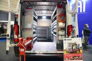 デュカトベース車は、バンコンバージョンのキャンパーはもちろんのこと、工具やキャビネット類を搭載した“サービスカー”も提案され、多用途性をアピール。197㎝(ハイルーフは221㎝)の室内高により、成人男性でも腰をかがめることなく“立ち仕事”ができるのは魅力だ。