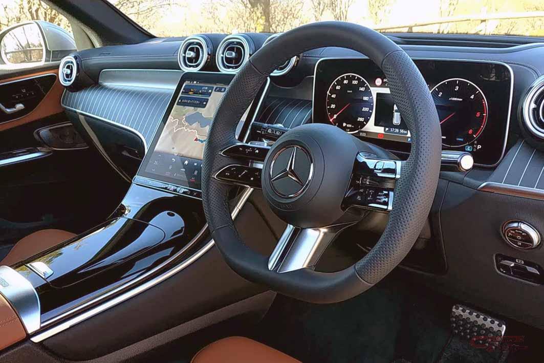 欧州ではガソリンエンジン搭載仕様や、それを含めたPHEV仕様などもラインナップされている新型だが、日本市場に向けては現在のところ、最高17kW≒23PSの出力と205Nmの最大トルクを発するモーターをエンジンと9速ステップAT間に置いた、マイルドハイブリッド・システムを加えたターボ付き2リッター4気筒ディーゼル・エンジンを搭載し、4輪を駆動する『220d 4マティック』のみの設定。テストドライブを行ったのは、そこに”AMGラインパッケージ”や”AMGレザーエクスクルーシブパッケージ”、”ドライバーズパッケージ”など190万円を越えるオプションを加えたモデルだった。