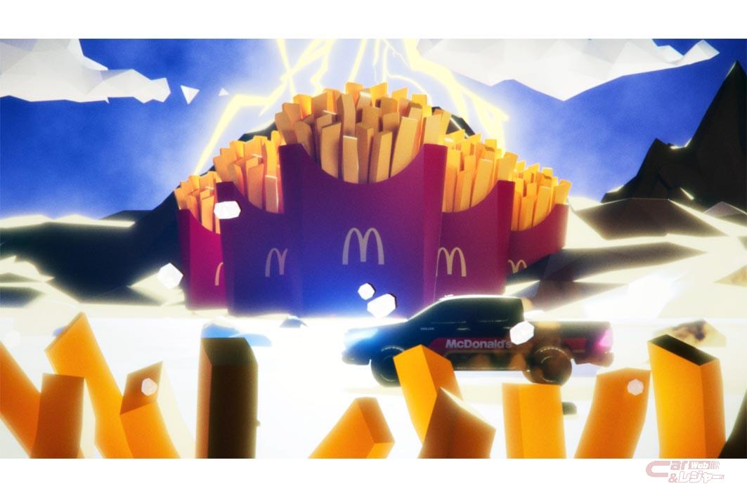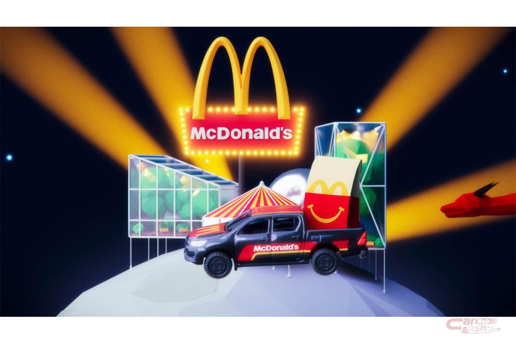 コラボムービーでは、そのかっこいいハイラックスが遊んでいた男の子の手から離れるとひとりでに走り出し、ハンバーガーやポテトが次々と現れるファンタジーな世界を4WDらしくダイナミックに走る姿が描かれている。最後は月にあるドライブスルーの列に並び、商品で膨らんだ紙袋を荷台に積んで走り出し再び男の子の元へ戻る……というものだ。