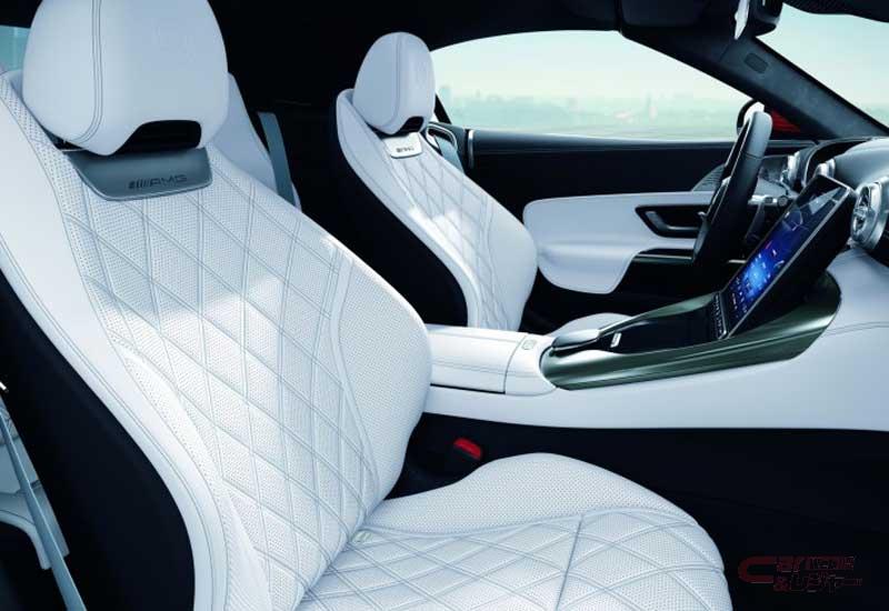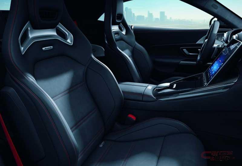 フロントとリやはよりスポーティなデザインとなり、高い動力性能を表現。また、オプションのAMGカーボンパッケージを選択すると、フロントスポイラーやサイドエアインテーク、サイドスカートトリム、リアディフューザートリム等にカーボンファイバーが装着されるとともに、マットブラックペイント21インチAMG 10ツインスポークアルミホイール(鍛造)となり、さらにスポーティなエクステリアとなる。インテリアにはAMGカーボンファイバーインテリアトリムをオプションとして設定した。