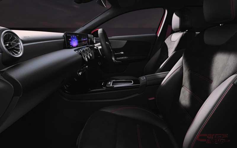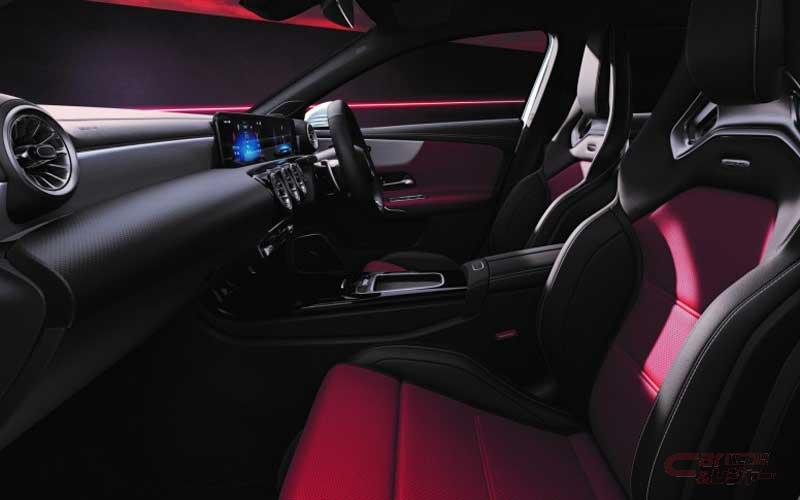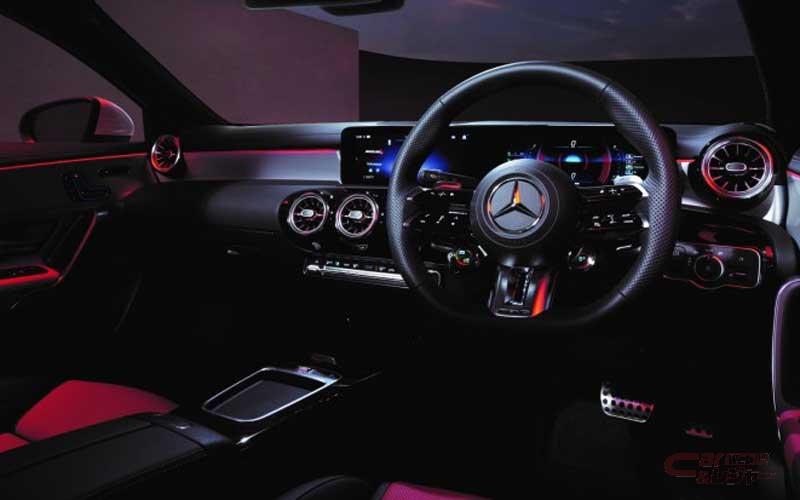 インテリアには、3本のツインスポークにより近未来的なスポーティさを演出する、新世代のステアリングホイールを採用。ナビゲーションやインストルメントクラスター内の各種設定や安全運転支援システムの設定を手元で完結できる機能性を備え、従来はタッチコントロールボタンへの接触やステアリングホイールにかかるトルクで判定していた、ディスタンスアシスト・ディストロニック使用時のハンズオフ検知機能のために、新たにリムに静電容量式センサーを備えたパッドを採用。また、センターコンソールに設置していたタッチパッドを廃止し、すっきりとしたインテリアデザインとなったほか、A 35 4MATICではオプションのアドバンスドパッケージを選択すると、シックで高級感のあるインテリアを演出する本革ブラックをの選択が可能となった。