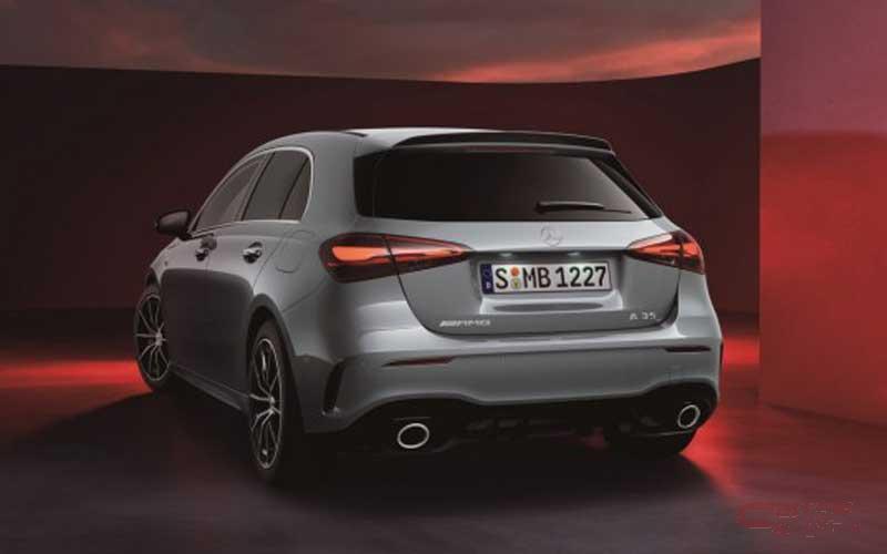 フロントでは、 縦ルーバーをあしらったAMG専用フロントグリル(A 35 4MATIC)や、 新デザインのボンネットエンブレムを装備し、シャープな印象を与える水平基調のヘッドライトデザインを採用したほか、 サメの尖った鼻先を想わせる前傾したフロントエンドによりシャープさを強調するなど、よりスポーティに刷新。