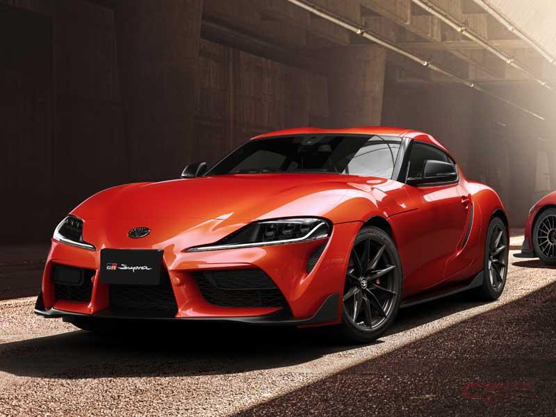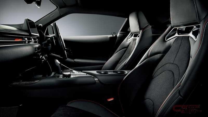 今回設定される特別仕様車 RZ“プラズマオレンジ100エディション”は、RZグレードのオートマチックトランスミッション車をベースに、ソリッドな質感と燃えるような鮮やかな専用外板色「プラズマオレンジ」を採用し、スープラの純粋なスポーティさを表現。また、アルカンターラ本革(ブラック)シート、マットブラック塗装 鍛造アルミホイール、ブラック塗装ブレーキキャリパー(フロント : GRロゴ入り)、“Plasma Orange 100 Edition”カーボンオーナメント(助手席前方に装飾)を特別装備している。